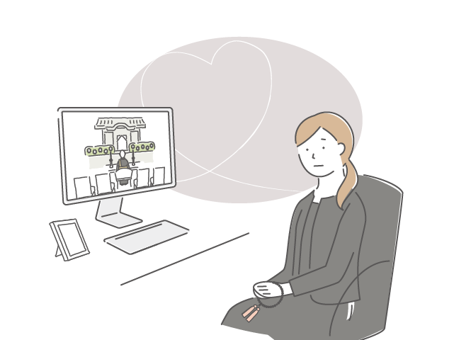オンライン法要とは、インターネットを通じて行なう法要のことです。コロナ禍以降、ビジネスシーンでZoomなどのテレビ会議システムを利用して、会議や打ち合わせを行なうことが増えてきましたが、法要にも活用されるようになりました。