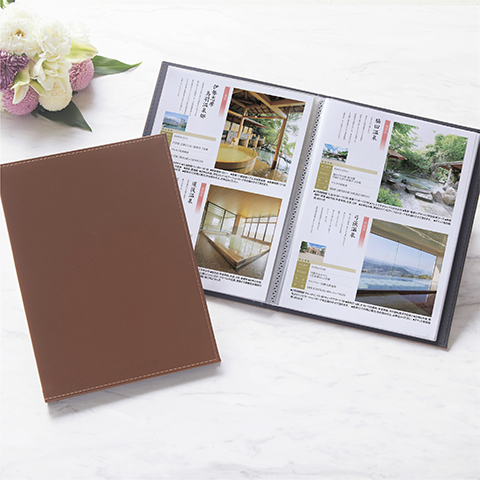 落ち着いた和風表紙の冊子タイプと、後々まで利用できるファイルタイプをご用意しています。